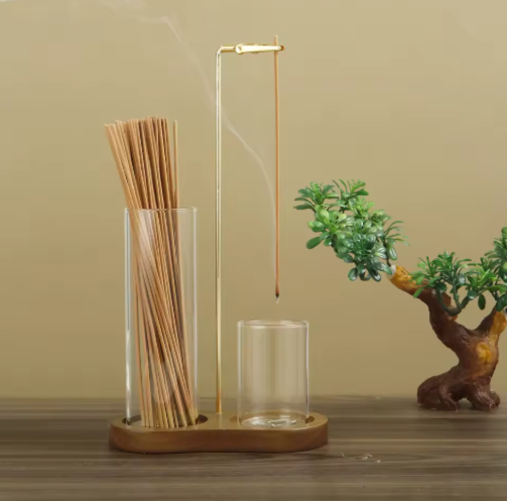 حامل بخور 2 في 1 عملي يجمع بين منظم رماد البخور وملحقات التأمل واليوجا لتعزيز أجواء الاسترخاء والتنظيم في مكانك.