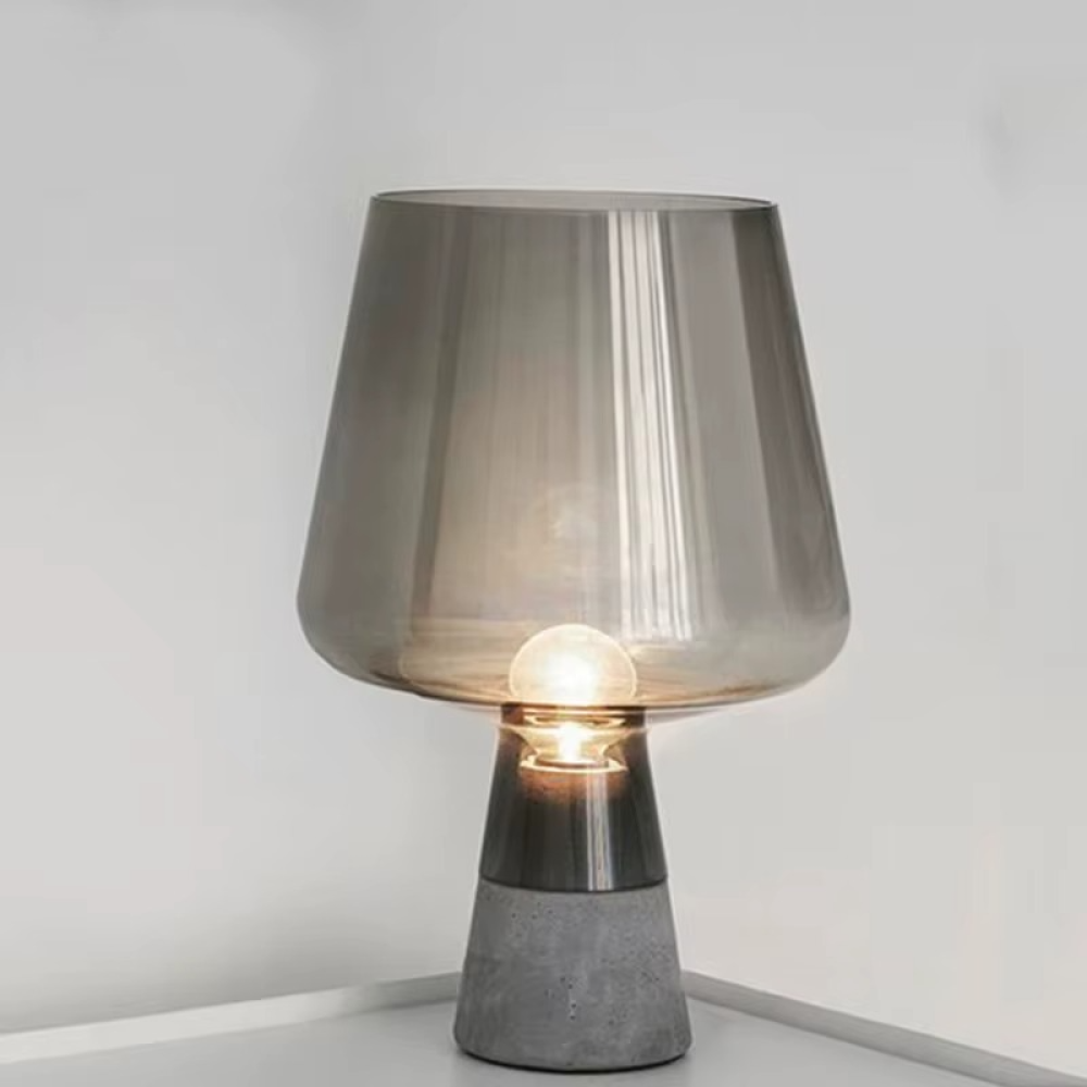 مصباح طاولة أسمنتي مع عاكس زجاجي